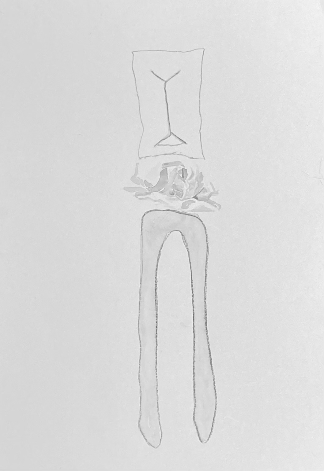 De vormelementen van dat gebouwtje werden onderdelen van een mannetje; het hoofd, de benen en de romp.